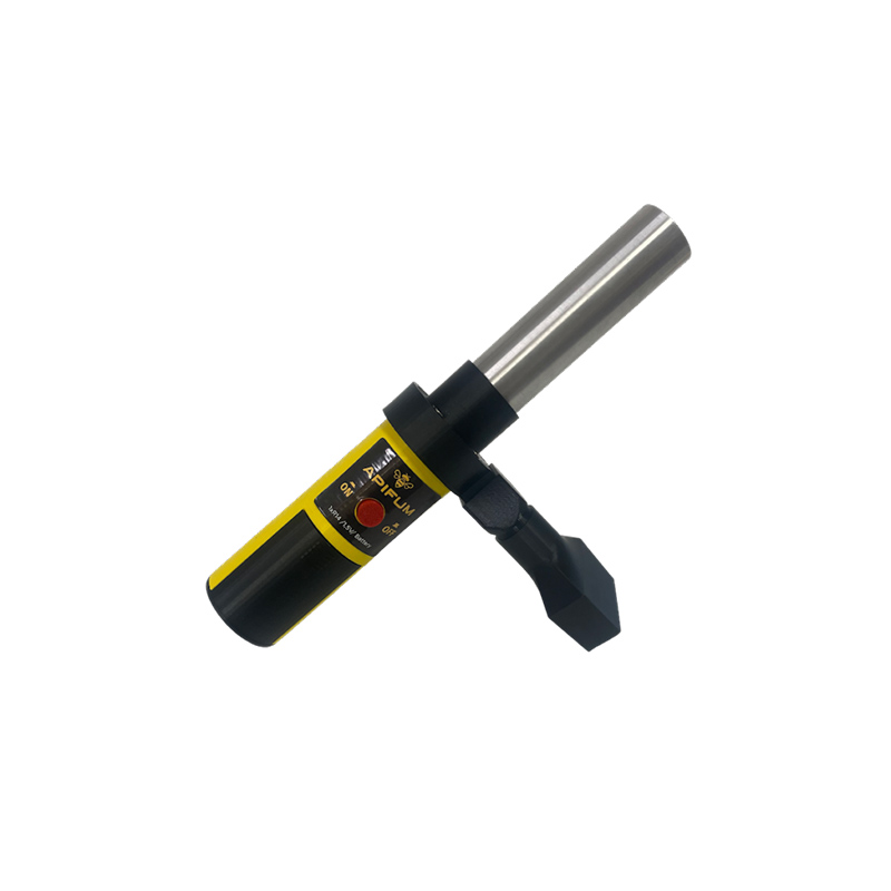 6) Vložte fumigátor s nástavcom do otvoru v úli, ktorý chcete fumigovať. Základná poloha je horizontálna. V prípade potreby môžete fumigátor umiestniť aj vertikálne s hliníkovou rúrkou smerujúcou nahor.