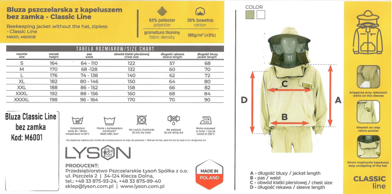 Včelárska nerozopínateľná košeľa s odnímateľným klobúkom CLASSIC line je vyrobená z kvalitného materiálu. Vyznačuje sa nasledovnými vlastnosťami:
