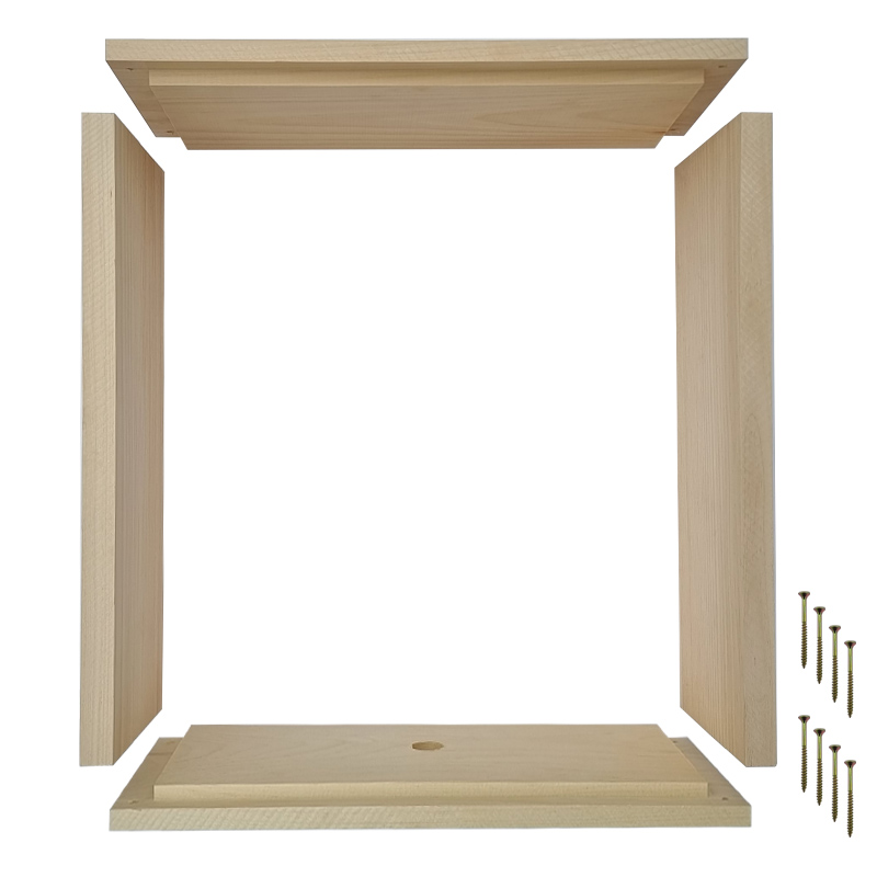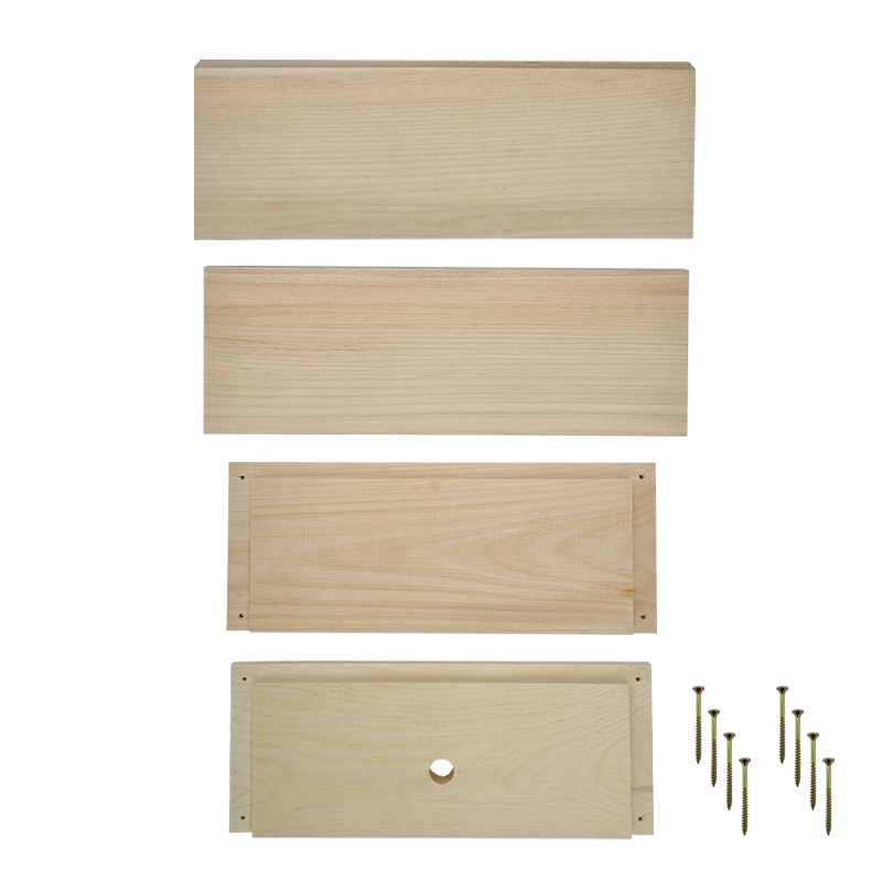 Hrúbka dosiek je 25 mm. Drevina pinus strobus - vejmutovka, je najvhodnejšie drevo na nadstavky. Je ľahké, minimálne praská, nemení rozmery a dobre odoláva poveternostným vplyvom - je veľmi trvácne.