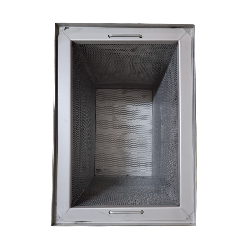 Kapacita: Perforovaný kôš je navrhnutý pre veľké objemy: naraz pojme až 19 veľkých rámikov (typu B, Čechoslovák, Jumbo atď.) alebo 25 menších rámikov (typu E, 39x17, 2/3 atď.).